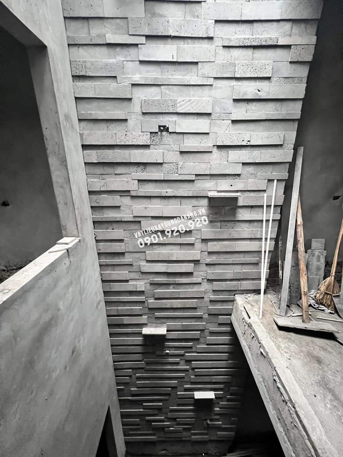 Đá ong xám phẳng ốp tường cầu thang đẹp